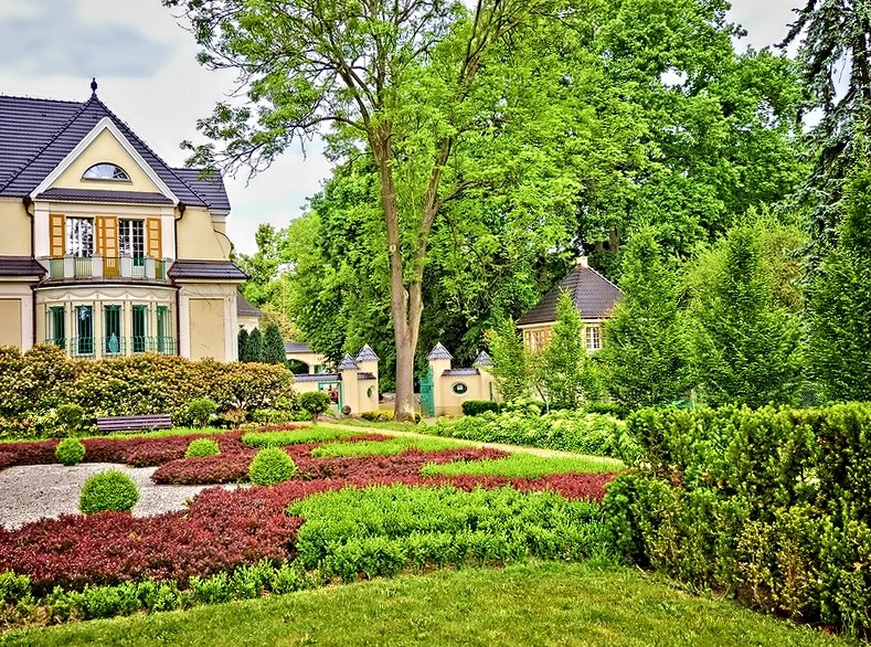 Park z XIX w., który po stronie północnej ma duży staw z wyspą, gdzie rosną dwa dwustuletnie dęby.