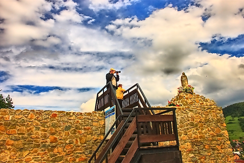 Ruiny, pozostałości wieży i muru tarczowego, znajdują się na szczycie stromej góry o wysokości 527 m n.p.m., nazywanej Baszta lub Zamczysko. (...)
